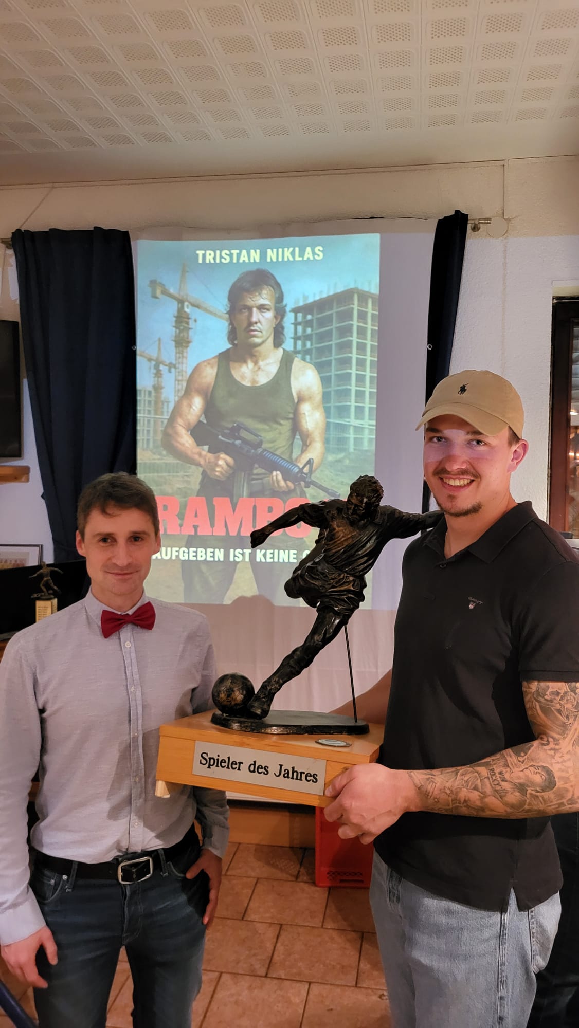 Den Höhepunkt und zugleich den Abschluss des Abends bildete die Wahl zum Spieler des Jahres – inszeniert in diesem Jahr in echter Oscar-Verleihungs-Manier. Thomas Atzler führte als Moderator durch den Programmpunkt, während Stephan Depta als Laudator fünf nominierte Spieler vorstellte. Jeder Kandidat erhielt dabei einen eigens kreierten Filmtitel samt passendem Filmcover, was für viele Lacher und große Aufmerksamkeit sorgte. Am Ende durfte sich Tristan Niklas über die Auszeichnung freuen. Unter dem Titel „Rambo X – Aufgeben ist keine Option“ wurde der Kapitän für ein Jahr voller starker Leistungen, enormen Einsatzes und vorbildlicher Führungsqualitäten geehrt. Er geht damit als 51. Spieler des Jahres in die Geschichte der Helvetia ein.